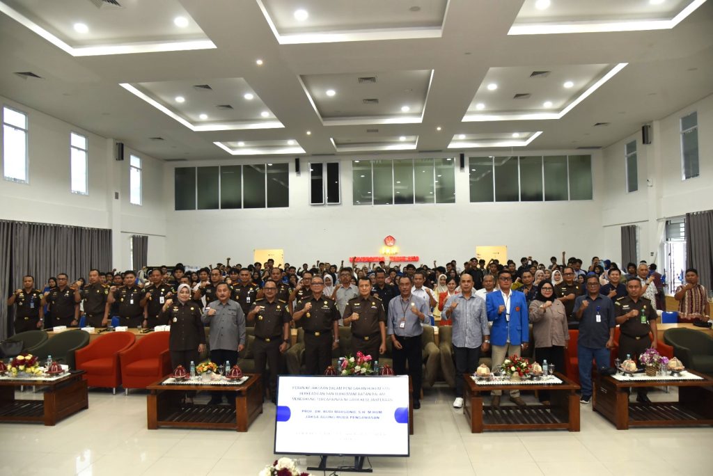 Sementara itu, dalam paparan materi yang disampaikan, Prof. Rudi Margono menegaskan posisi strategis Kejaksaan dalam menegakkan supremasi hukum di Indonesia. Ia menuturkan bahwa penegakan hukum ideal harus seimbang antara keadilan, kemanfaatan, dan kepastian hukum.