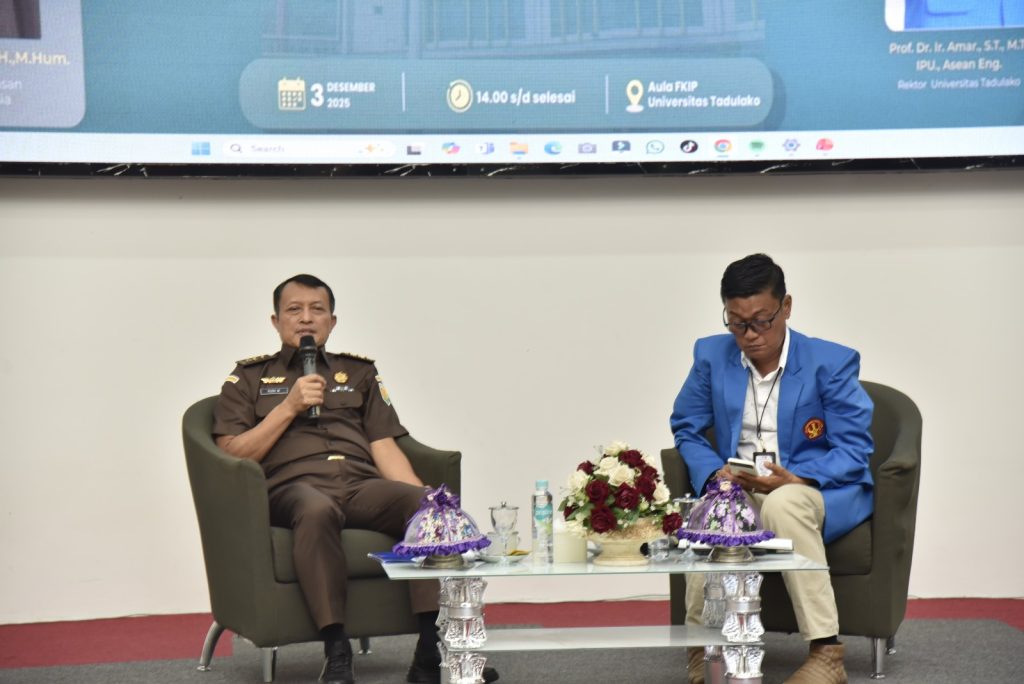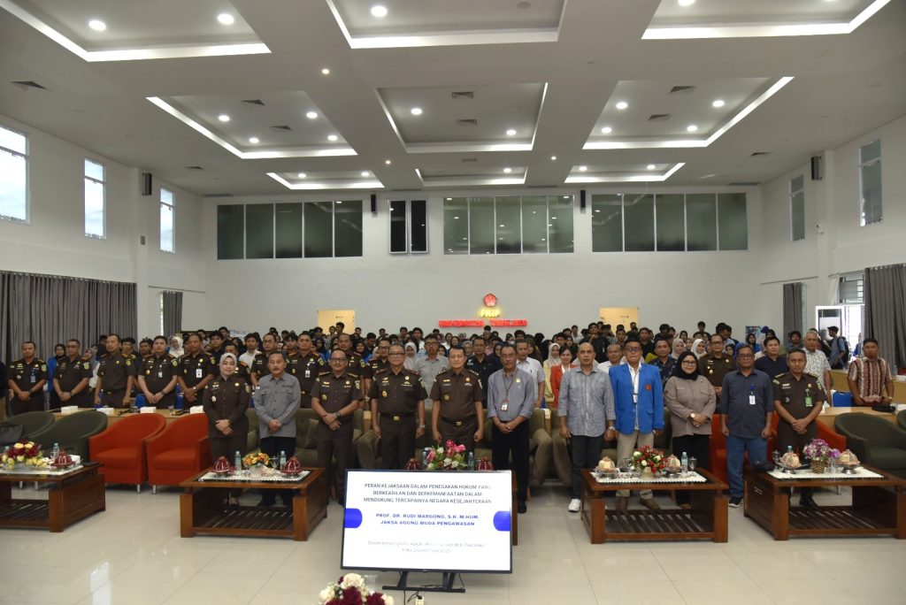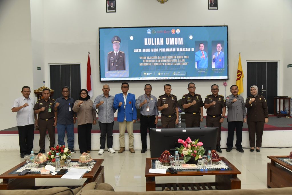 Rabu, 4 Desember 2025 Jaksa Agung Muda Pengawasan (JAMWAS) Kejaksaan RI, Prof. Dr. Rudi Margono, S.H., M.Hum., hadir sebagai pemateri utama dalam kuliah umum yang diselenggarakan di Universitas Tadulako (Untad) bertema “Peran Kejaksaan dalam Penegakan Hukum yang Berkeadilan dan Berkemanfaatan dalam Mendukung Tercapainya Negara Kesejahteraan” di Aula FKIP Untad.