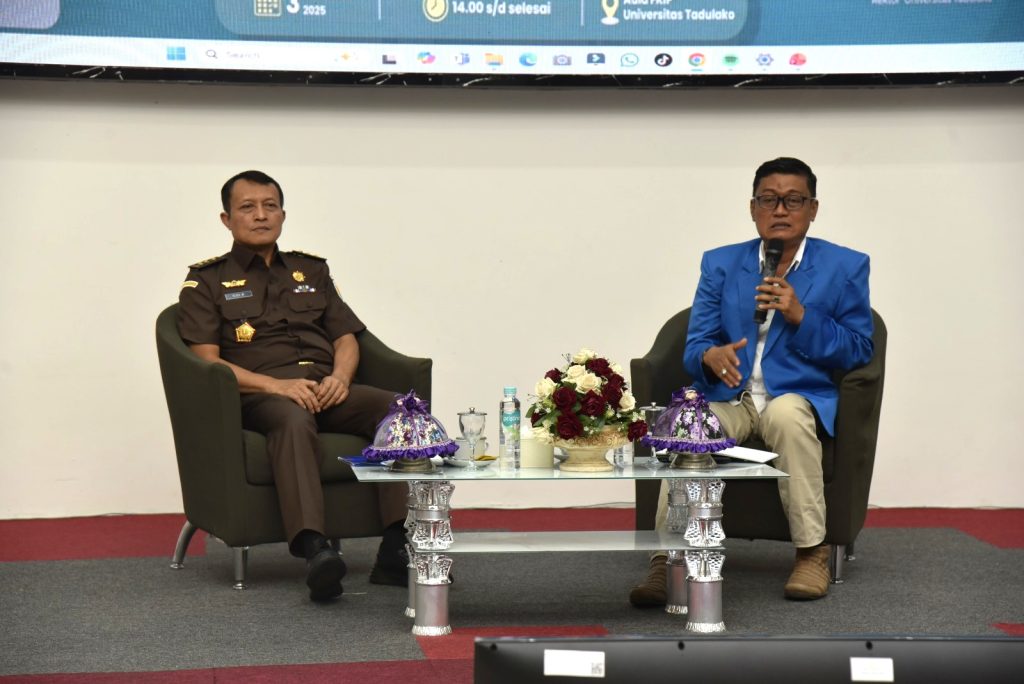 Dalam sambutannya, Wakil Rektor Bidang Kemahasiswaan dan Alumni, memberikan apresiasi kepada Kejaksaan RI karena telah menyediakan ruang edukatif bagi civitas akademika Untad.