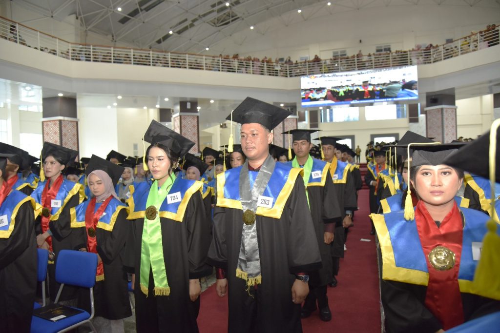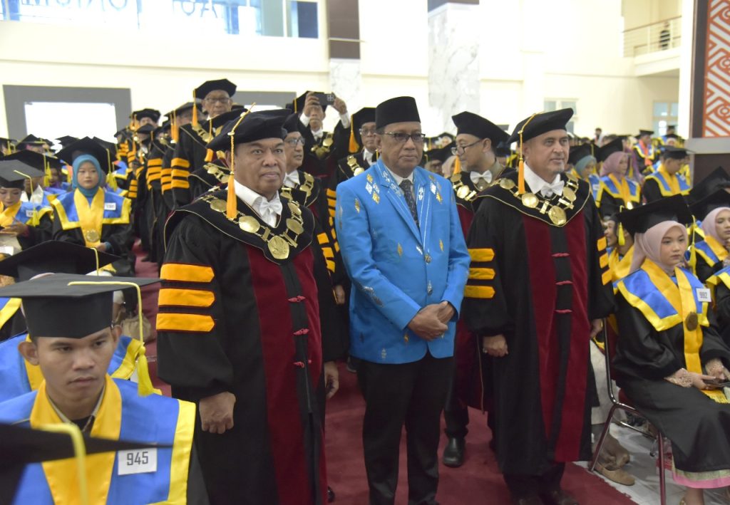 “Adapun jumlah wisudawan yang diwisuda pada periode ini Fakultas Pascasarjana meluluskan 47 wisudawan, Fakultas Hukum sebanyak 102 wisudawan, Fakultas Ekonomi dan Bisnis sebanyak 195 wisudawan, dan Fakultas Teknik menjadi yang terbanyak dengan 317 wisudawan. Selanjutnya, Fakultas Pertanian meluluskan 61 wisudawan, Fakultas Kehutanan sebanyak 56 wisudawan, dan Fakultas Kedokteran sebanyak 59 wisudawan. Fakultas Matematika dan Ilmu Pengetahuan Alam (MIPA) meluluskan 94 wisudawan, Fakultas Keguruan dan Ilmu Pendidikan (FKIP) sebanyak 201 wisudawan, serta Fakultas Peternakan dan Perikanan sebanyak 51 wisudawan. Kemudian, Fakultas Kesehatan Masyarakat meluluskan 79 wisudawan, dan Fakultas Ilmu Sosial dan Ilmu Politik (FISIP) meluluskan 213 wisudawan,”tuturnya.