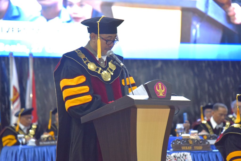 Sementara itu dalam Pesan Almamaternya, Rektor Universitas Tadulako, Prof. Dr. Ir. Amar, M.Si., menegaskan komitmen Untad untuk terus bertransformasi menuju universitas yang unggul dan berdaya saing global. Salah satu langkah nyata yang ditempuh adalah peluncuran SIGA-8 (Sistem Informasi Global Akses), inovasi digital yang menjadi simbol arah baru universitas dalam memperkuat tata kelola dan layanannya, baik dari segi akademik, riset, publikasi, kemahasiswaan, maupun administrasi.