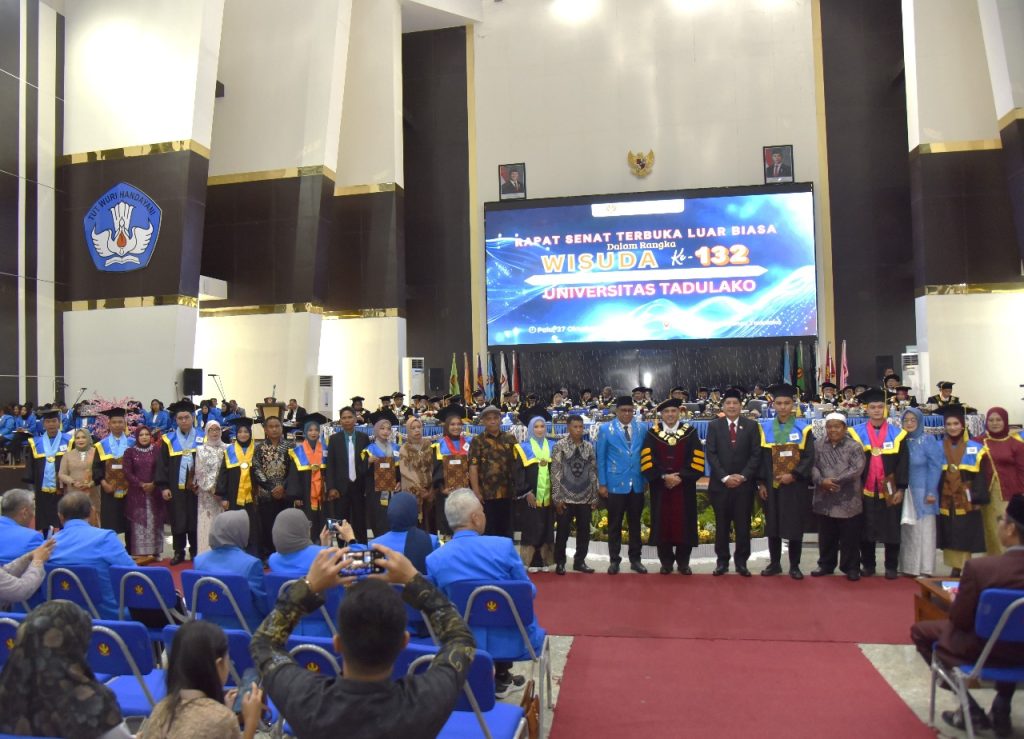 Palu, 27 Oktober 2025 — Universitas Tadulako kembali meluluskan 1.475 wisudawan dari jenjang Diploma, Sarjana, Profesi, Magister, hingga Doktoral pada Wisuda ke-132, yang digelar di Auditorium Untad, Senin (27/10). Kegiatan ini dibuka oleh Ketua Senat, Prof. Dr. Djayani Nurdin, S.E., M.Si serti turut dihadiri oleh sejumlah pejabat daerah, unsur Forkopimda, serta para mitra strategis universitas.