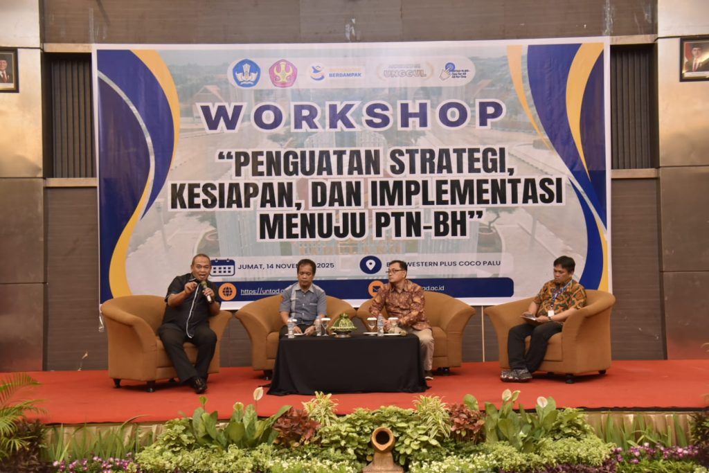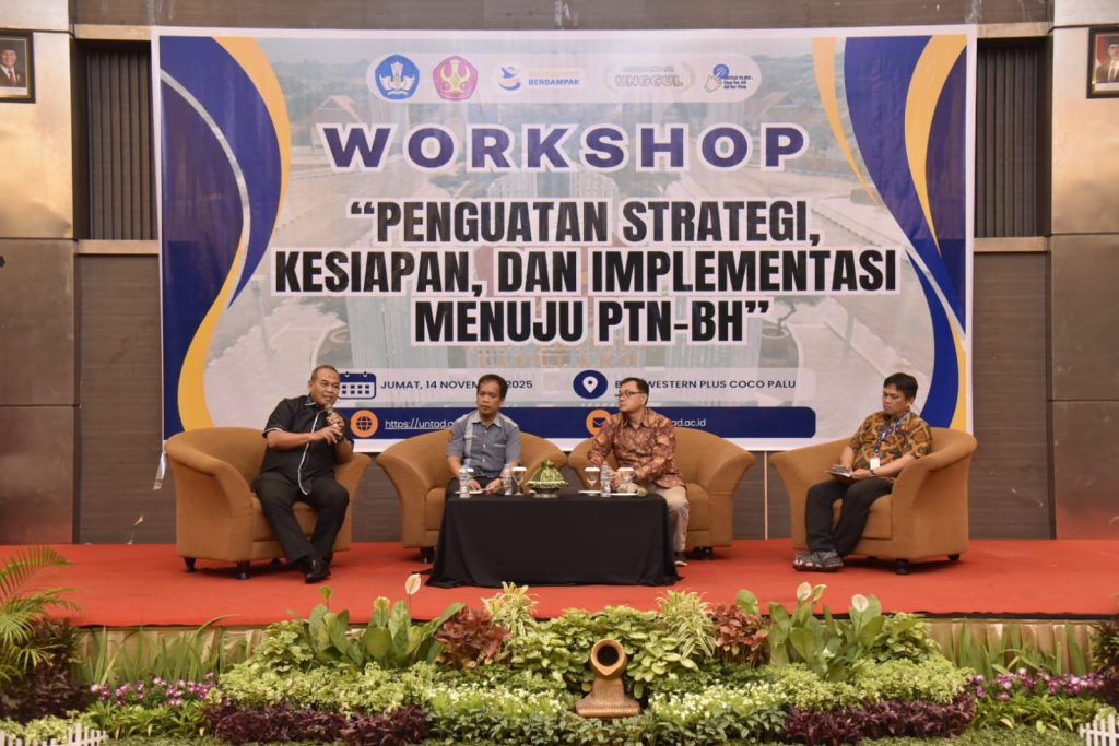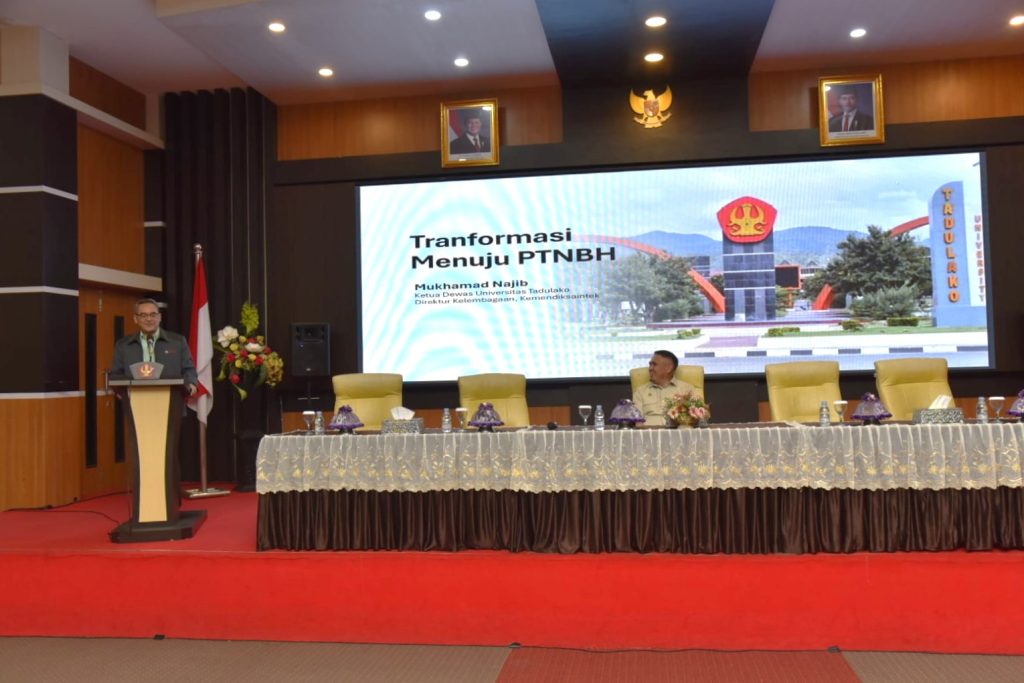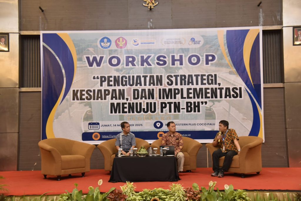 Universitas Tadulako terus memantapkan langkahnya untuk bertransformasi menjadi Perguruan Tinggi Negeri Berbadan Hukum (PTN-BH) melalui penyelenggaraan Workshop Penguatan Strategi, Kesiapan, dan Implementasi Menuju PTN-BH. Kegiatan ini dihadiri langsung oleh Ketua Dewan Pengawas (Dewas) Universitas Tadulako yang juga menjabat sebagai Direktur Kelembagaan Kemendiktisaintek RI, Prof. Dr. Mukhmad Najib, S.TP., M.M.