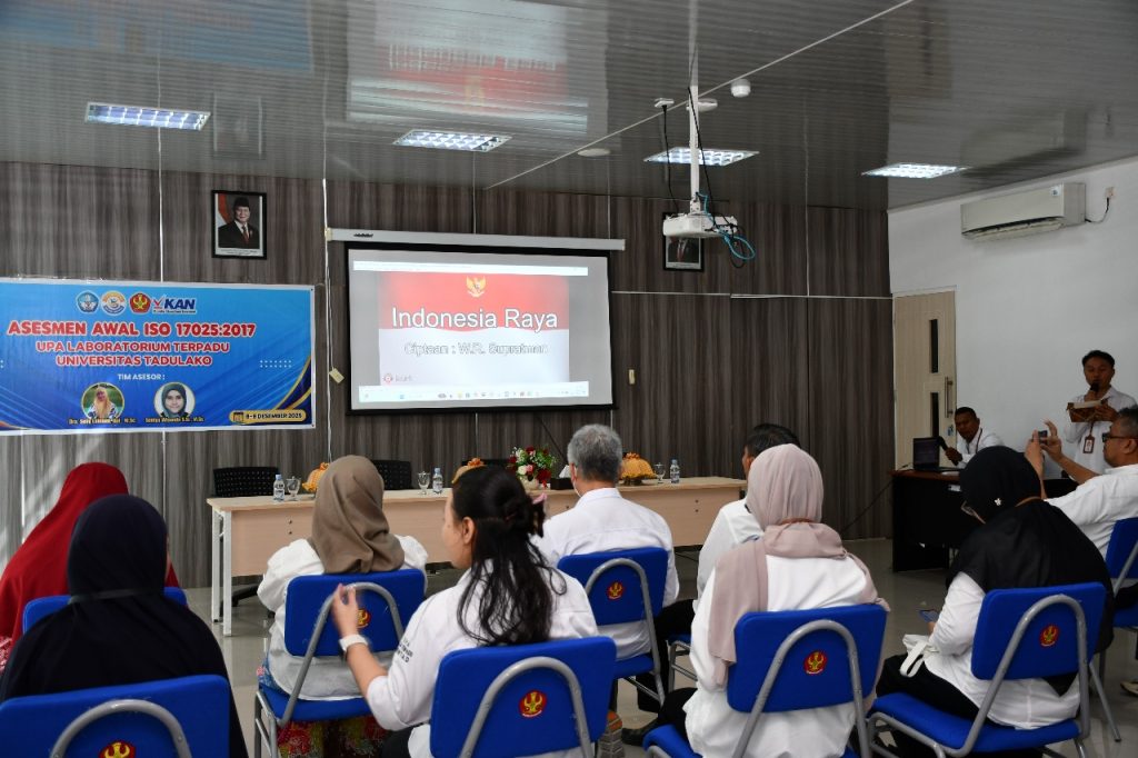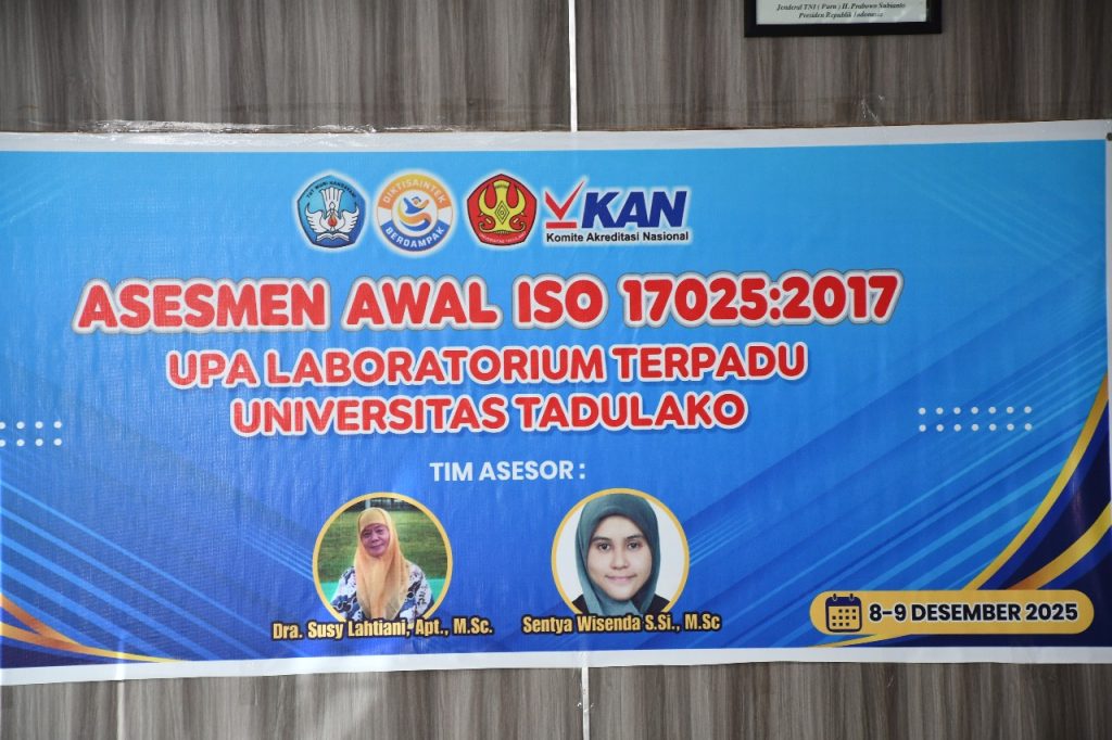 Senin, 8 Desember 2025, UPA Laboratorium Terpadu Universitas Tadulako melaksanakan pembukaan kegiatan Asesmen Awal ISO 17025:2017 yang bertempat di Ruang Rapat Laboratorium Terpadu. Kegiatan ini dihadiri oleh sejumlah pimpinan fakultas dan lembaga di lingkungan Universitas Tadulako.