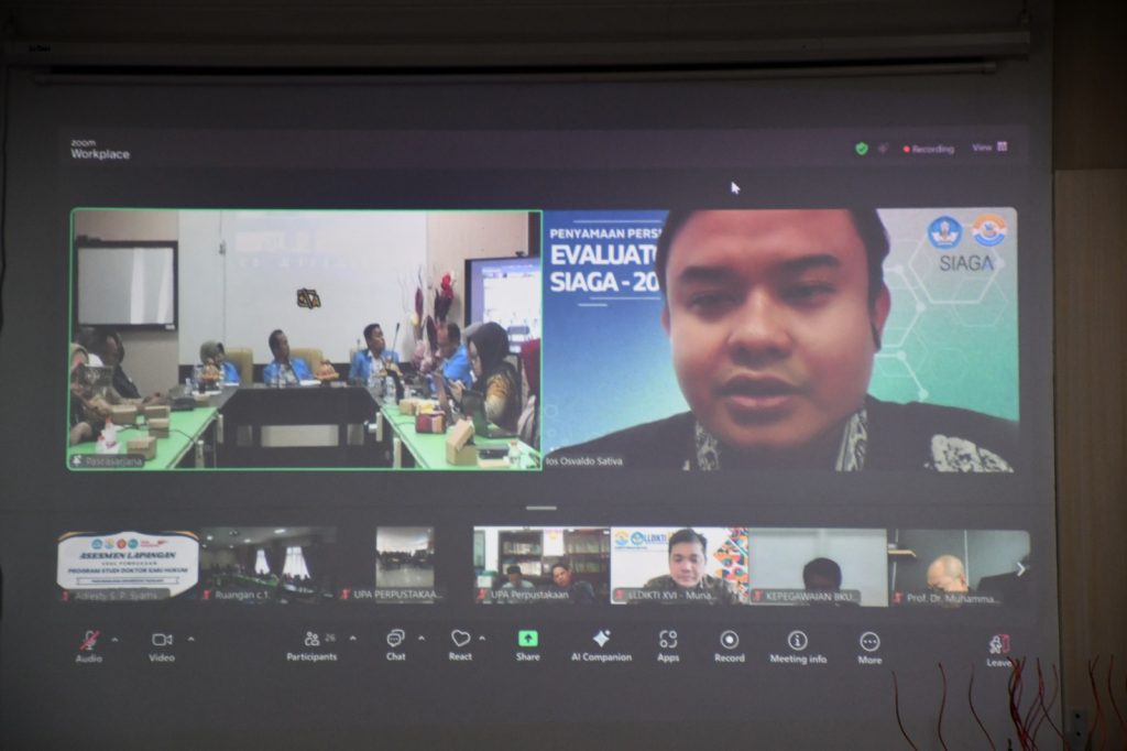 “Tim mengecek kesesuaian antara dokumen yang diunggah di SIAGA dengan kondisi lapangan. Penilaian difokuskan pada kurikulum, SDM, dan sarana prasarana. Setelah evaluasi dan presentasi, akan dilakukan peninjauan SARPRAS secara virtual, penyusunan berita acara, dan pemberian kesempatan perbaikan maksimal hingga 14 Desember sebelum sistem SIAGA ditutup,” jelas Osvaldo via Zoom.