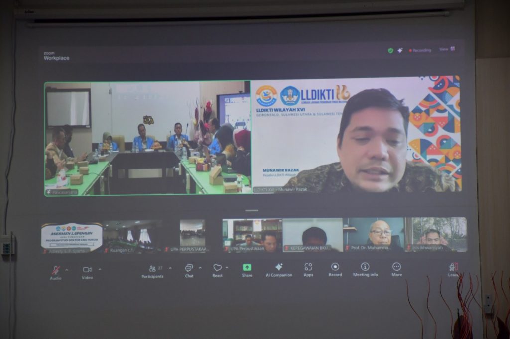 “Prodi ini sangat penting karena akan memberikan kesempatan pendidikan S3 bagi dosen, hakim, jaksa, dan praktisi di Palu tanpa harus studi ke luar daerah. Ini juga mendukung peningkatan kualifikasi dosen swasta di Sulawesi Tengah yang masih rendah. Kami berharap evaluasi berjalan lancar agar SK pembukaan prodi dapat terbit sebelum penutupan SIAGA,” ungkapnya melalui Zoom.
