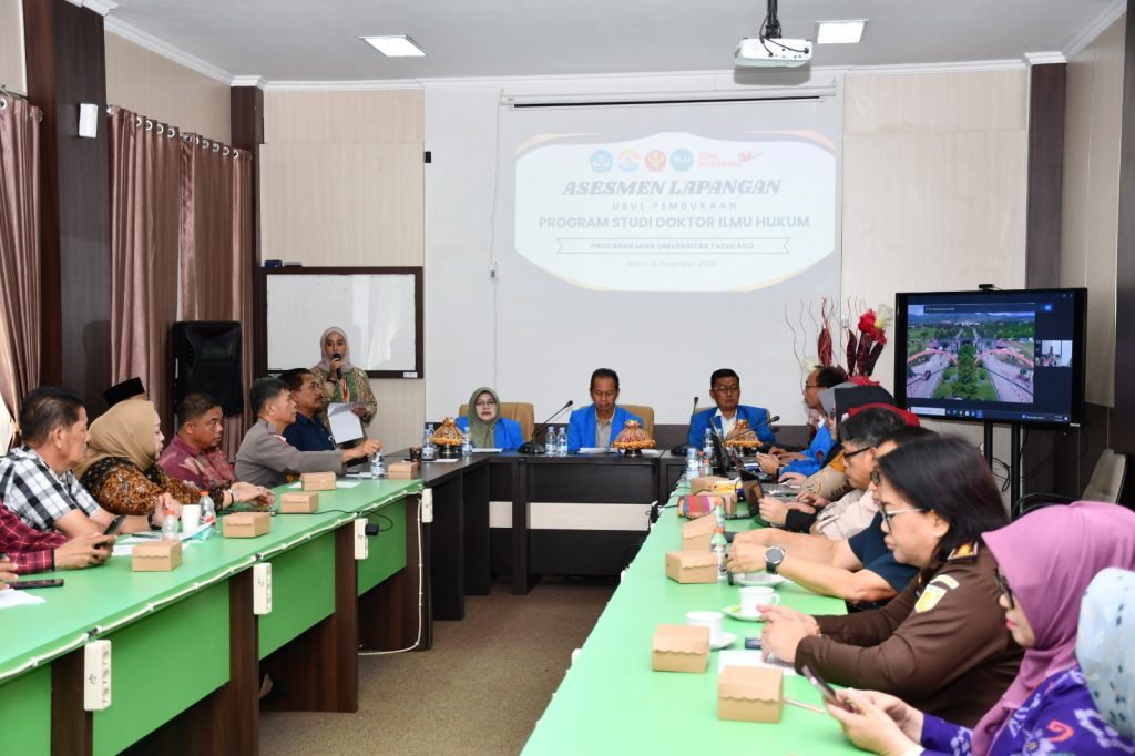 Pada Rabu pagi (10/12/2025), Universitas Tadulako (Untad) melaksanakan Evaluasi Lapangan Usul Pembukaan Program Studi Doktor Ilmu Hukum secara hybrid bertempat di Gedung C Lantai I Pascasarjana Untad.