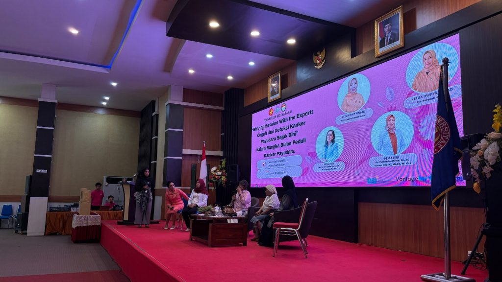Dalam rangka memperingati Bulan Peduli Kanker Payudara atau Breast Cancer Awareness Month yang rutin diperingati setiap bulan Oktober, Fakultas Kedokteran Universitas Tadulako (FK Untad) pada Jumat pagi (31/10/2025) menyelenggarakan kegiatan pengabdian masyarakat bertajuk “ Sharing Session With the Expert : Cegah dan Deteksi Kanker Payudara Sejak Dini” bertempat di Aula Baru Fakultas Kedokteran Untad.