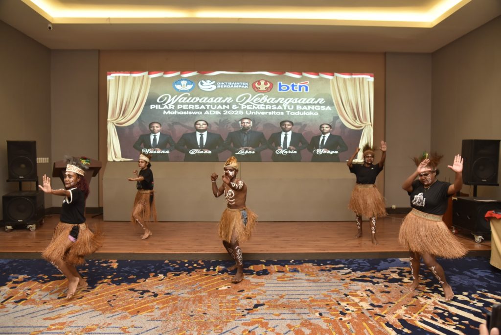 Kemahasiswaan dan Alumni Universitas Tadulako (Untad) telah melaksanakan pembukaan program Wawasan Kebangsaan dan Bela Negara khusus bagi mahasiswa penerima Beasiswa Afirmasi Pendidikan Tinggi (ADik) tahun 2025. Acara yang dibuka di Hotel Swiss-Bel Palu pada Jumat malam (31/10) ini mengusung tema “Pilar Persatuan dan Pemersatu Bangsa” dan dijadwalkan berlangsung selama tiga hari, hingga 2 November 2025.