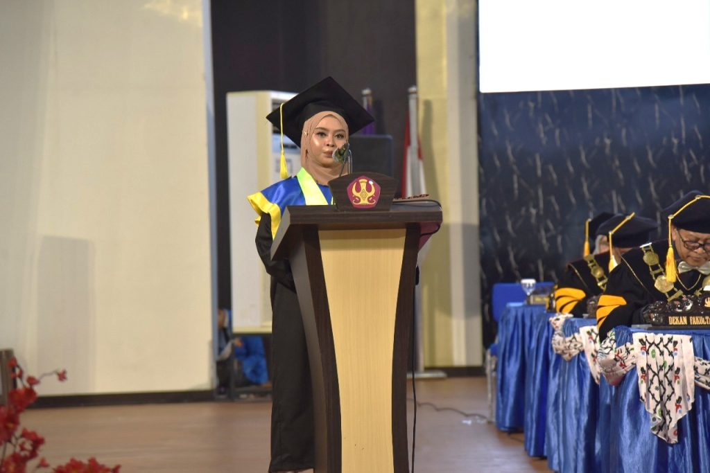 Gubernur Sulawesi Tengah diwakili oleh Staf Ahli Bidang Ekonomi dan Pembangunan sekaligus Plt. Kepala Dinas Sosial Sulawesi Tengah, Dr. Farid Rifai Yotolembah, S.Sos., M.Si., menyampaikan bahwa wisuda bukan akhir perjalanan, melainkan gerbang menuju fase pengabdian.