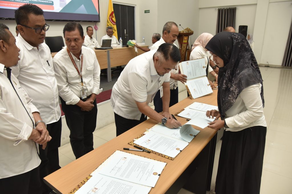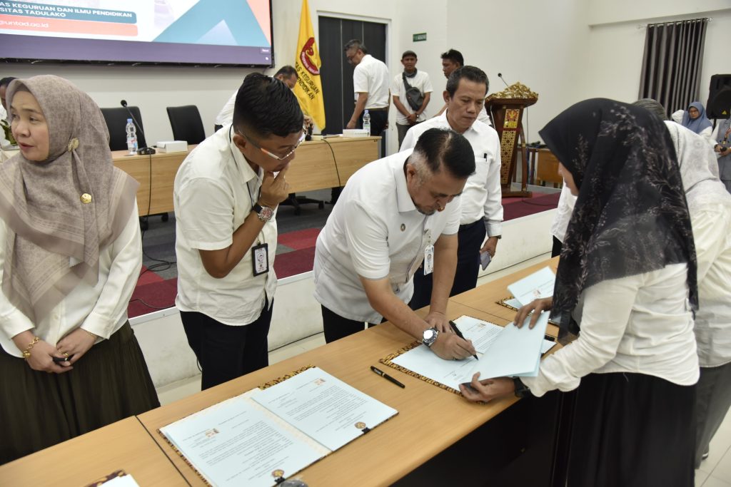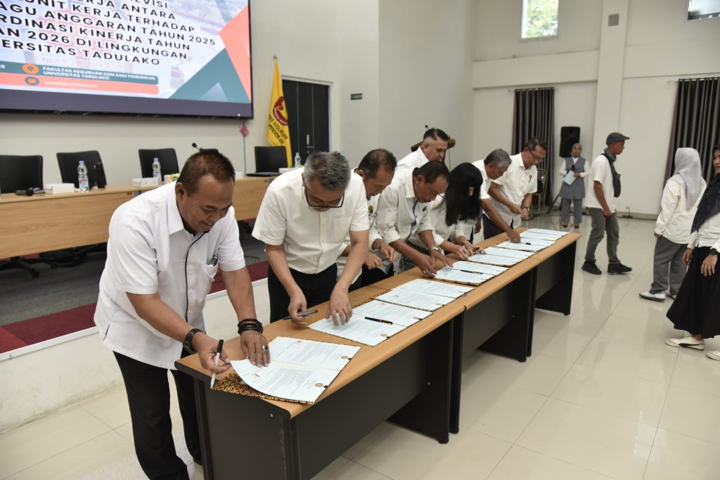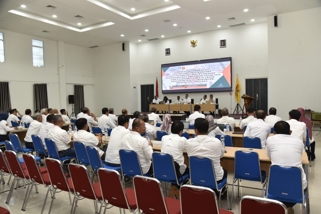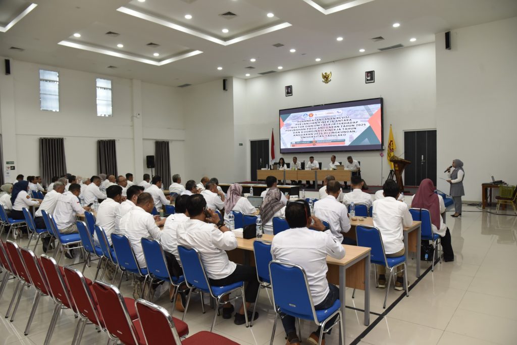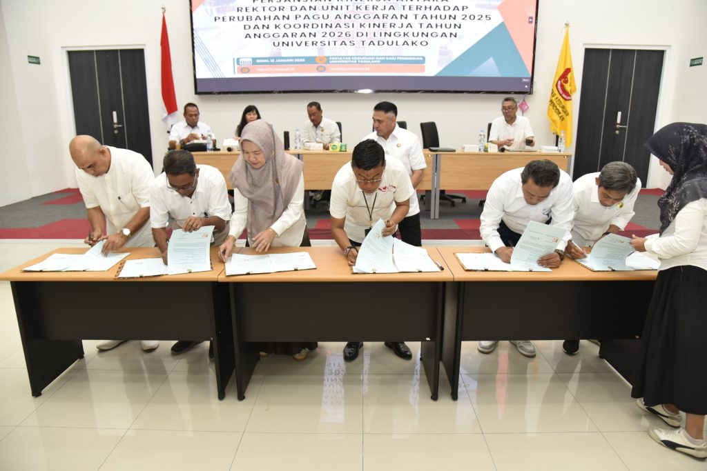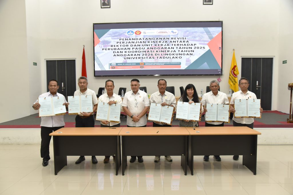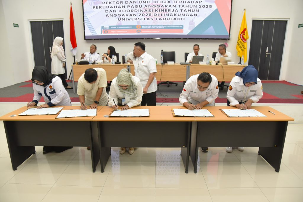 Senin (12/01/2026) bertempat di Aula FKIP, Universitas Tadulako telah menyelenggarakan kegiatan Penandatanganan Revisi Perjanjian Kinerja antara Rektor dan seluruh unit kerja sebagai tindak lanjut atas perubahan pagu anggaran Tahun Anggaran 2025. Kegiatan ini dirangkaikan dengan rapat koordinasi kinerja Tahun Anggaran 2026 yang dihadiri oleh seluruh jajaran pimpinan di lingkungan Universitas Tadulako.