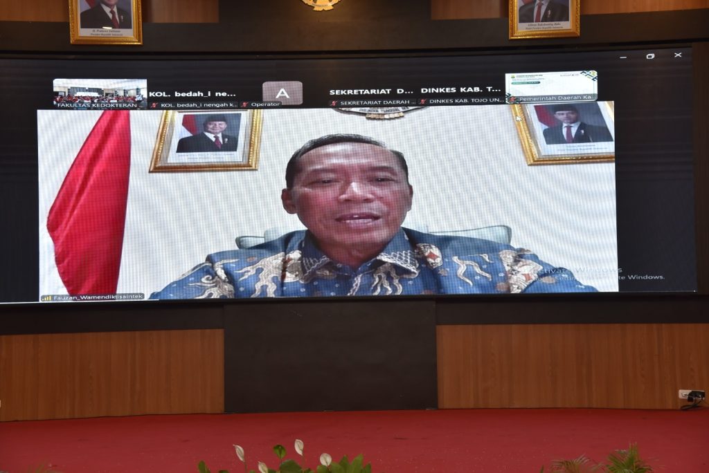Dalam sambutannya secara daring, Wakil Menteri Pendidikan Tinggi, Sains, dan Teknologi (Wamendiktisaintek), Prof. Dr. Fauzan, M.Pd menyampaikan apresiasi atas dibukanya tiga PPDS di FK Untad sebagai bagian dari program nasional percepatan pemenuhan tenaga medis spesialis dan subspesialis.